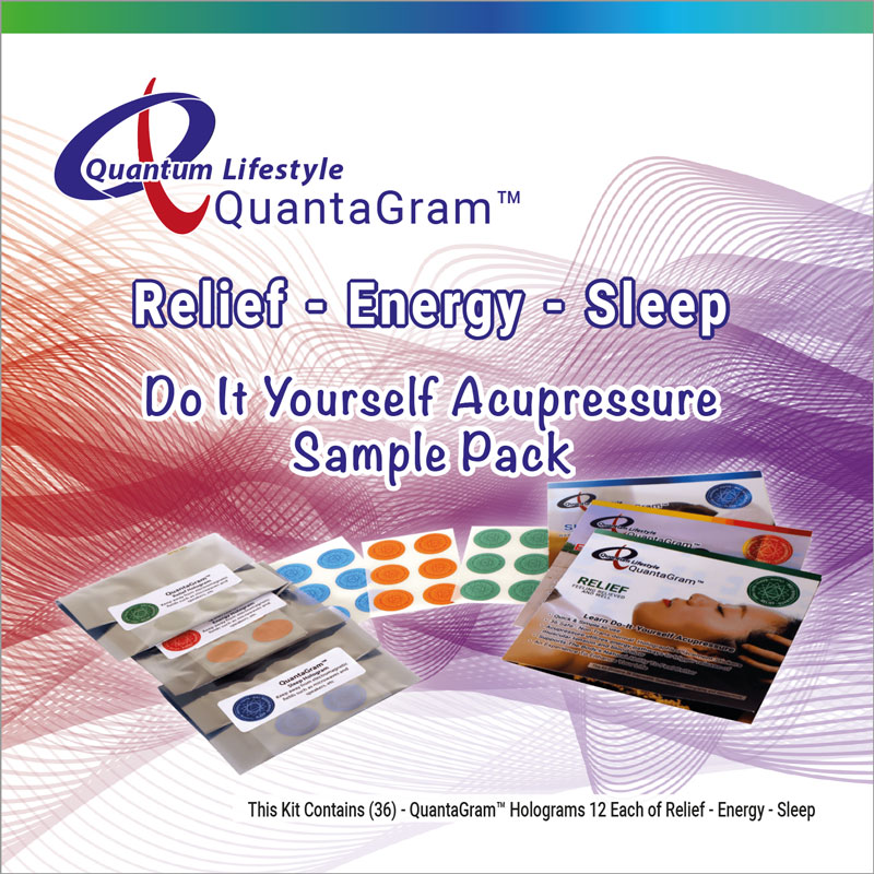 This Sample Pack Retails for $59.95 and provides you with 12 Energy, 12 Relief, and 12 Sleep, a total of 36 QuantaGrams and instructions. Each QuantaGram is Quantum Infused by our proprietary process and formula of natural herbal and earth frequencies.